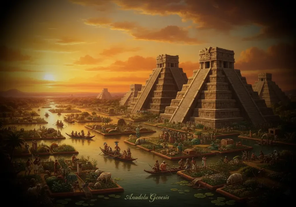 Orta Amerika’nın yüksek platosunda, bugün Mexico City’nin altında kalan geniş bir göl havzası vardı. Bu havza bir zamanlar yalnızca doğal bir manzara değildi; aynı zamanda dünyanın en etkileyici şehirlerinden birine ev sahipliği yapıyordu. Texcoco Gölü’nün ortasında yükselen Tenochtitlan, Aztek uygarlığının kalbi ve politik gücünün merkeziydi.