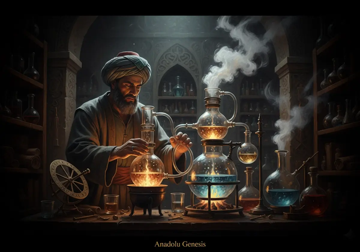 Cabir bin Hayyan’ın çalıştığı ortam, bugünün modern laboratuvarlarından oldukça uzaktı. Elektrikli cihazlar, hassas ölçüm aletleri ya da steril çalışma alanları yoktu. Onun dünyası; ateşin sürekli yandığı ocaklar, cam kaplar, metal imbikler, keskin kokular ve yoğun dumanla dolu dar odalardan oluşuyordu. Fakat bu kaotik gibi görünen ortamın içinde şaşırtıcı bir düzen vardı.