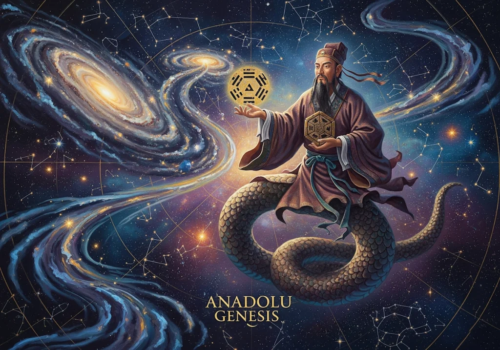 Anadolu Genesis olarak, Antik Çin’in en gizemli ve etkileyici figürlerinden biri olan Fu Xi’ye doğru bir yolculuğa çıkıyoruz. Çin mitolojisinin efsanevi Üç Hükümdarından biri olarak bilinen Fu Xi, insanlığa yazıyı, avcılığı, balıkçılığı ve en önemlisi Ba Gua (Sekiz Trigram) sistemini öğreten bir bilge olarak kabul edilir. Resmi kaynaklar, Fu Xi’yi, M.Ö. 2800 civarında yaşamış mitolojik bir hükümdar ve kültür kahramanı olarak tanımlar; ancak alternatif teoriler, onun dünya dışı bir rehber veya kayıp bir uygarlığın temsilcisi olabileceğini öne sürer. Yılan-insan formu, gökyüzünden gelen bilgeliği ve evrenin düzenini temsil eden Ba Gua, Fu Xi’nin hikayesini yalnızca mitolojik bir anlatı olmaktan çıkararak kozmik bir gizeme dönüştürür. Bu makale, Fu Xi’nin kökenlerini, mitolojik rolünü, Ba Gua’nın sırlarını ve modern dünyadaki yankılarını, resmi anlatılar ve alternatif iddialarla harmanlayarak, belgesel bir sunumla keşfedecek. Fu Xi, yalnızca bir efsane mi, yoksa insanlığın yıldızlarla bağlantısına dair bir anahtar mı? Gelin, bu esrarengiz figürün sırlarını katman katman aralayalım, her detayda yeni bir muamma keşfederek, insanlığın kökenine ve evrendeki yerine dair merakımızı ateşleyelim. Gerçek, ancak arayanlar tarafından bulunur.