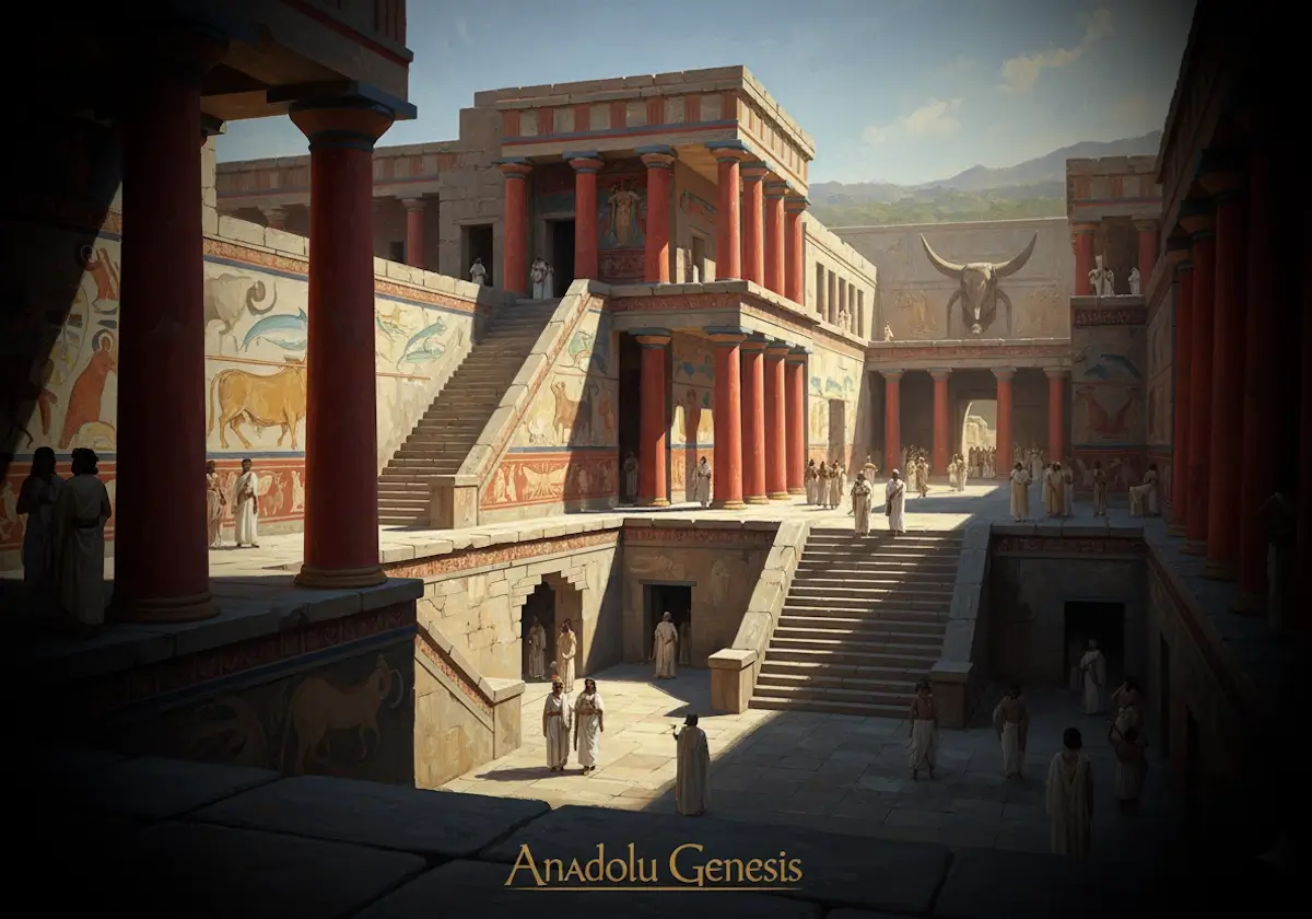 Girit Adası’nın kuzey kıyılarında, günümüzde Heraklion şehrinin yakınlarında uzanan geniş bir arkeolojik alan bulunur. Bu alan, antik dünyanın en etkileyici saray komplekslerinden birine ev sahipliği yapar: Knossos. Bugün taş duvarlar, sütun temelleri ve restore edilmiş renkli fresklerle görülebilen bu yapı, yalnızca bir saray değil aynı zamanda bütün bir uygarlığın merkeziydi. Arkeologların Minos uygarlığı adını verdiği bu kültür, MÖ üçüncü ve ikinci binyıllar boyunca Ege dünyasının en güçlü ve en gelişmiş toplumlarından biri olarak varlık gösterdi.