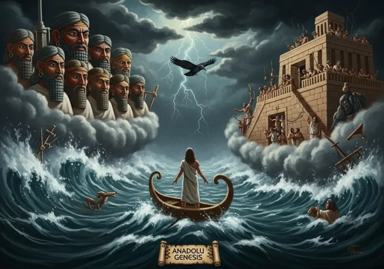MÖ 900–600 arası Asur Tufan Fragmanları, Gılgamış kuş salmasını ve Atrahasis gürültüsünü yeniden yazar. Ea uyarısı, gemi ve kurbanla kurtuluş alegorisi, Asur zaferlerini yenilenmeyle meşrulaştırır; bu metinler, Mezopotamya taşkınını imparatorluk propagandasına döker. Kültürel bağlamda, Ninova tabletleri, Bereketli Hilal sedimanlarını ritüel narratife dönüştürür.