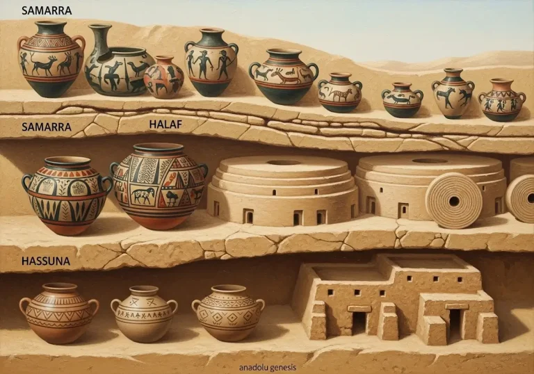 MÖ 6000–4800 yılları arasında Mezopotamya’da gelişen Tell es-Sawwan, Hassuna, Halaf ve Samarra kültürleri, seramik teknolojisinin ve sulama sistemlerinin yükselişiyle yerleşik hayatı dönüştürdü. Bu kültürler, Bereketli Hilal’in verimli ovalarında tarım surplusunu artırarak toplumsal karmaşıklığın temelini attı. Arkeolojik kazılar, özellikle Tell es-Sawwan’daki sulama kanalları ve Halaf seramikleri gibi bulgular, bu dönemlerin uygarlığın doğuşundaki rolünü aydınlatmaktadır.