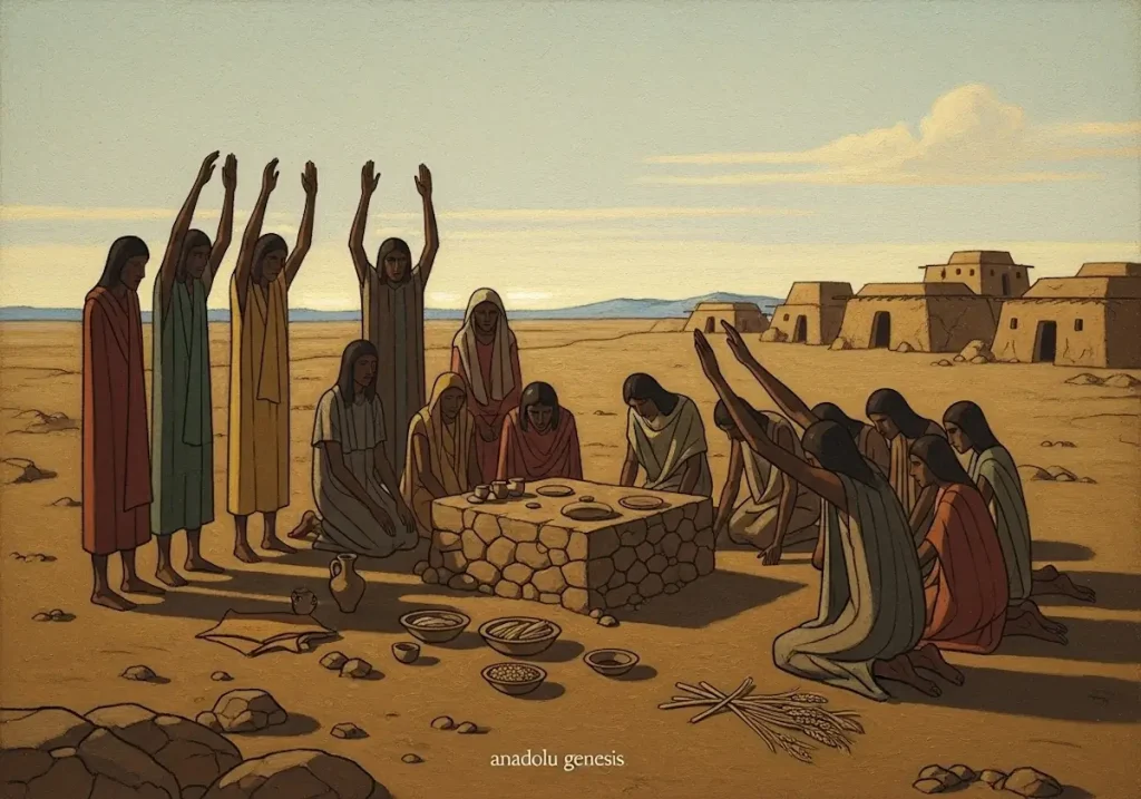 Erken ritüel alanları, Mezopotamya’da topluluk bilincini güçlendiren birleştirici mekanlar olarak işlev gördü. Tarımın belirsizlikleri (kuraklık, taşkınlar) ve çevresel zorluklar, toplulukları ortak ritüellere yöneltti. Göbeklitepe’deki ziyafet kalıntıları, farklı köylerden insanların bir araya geldiğini ve bu etkinliklerin sosyal bağları güçlendirdiğini gösterir. Arkeolojik analizler, bu alanlarda bulunan karbonize bitki ve hayvan kalıntılarının, MÖ 9.000’lerde toplu yemeklerin düzenlendiğini doğruladığını belirtir.