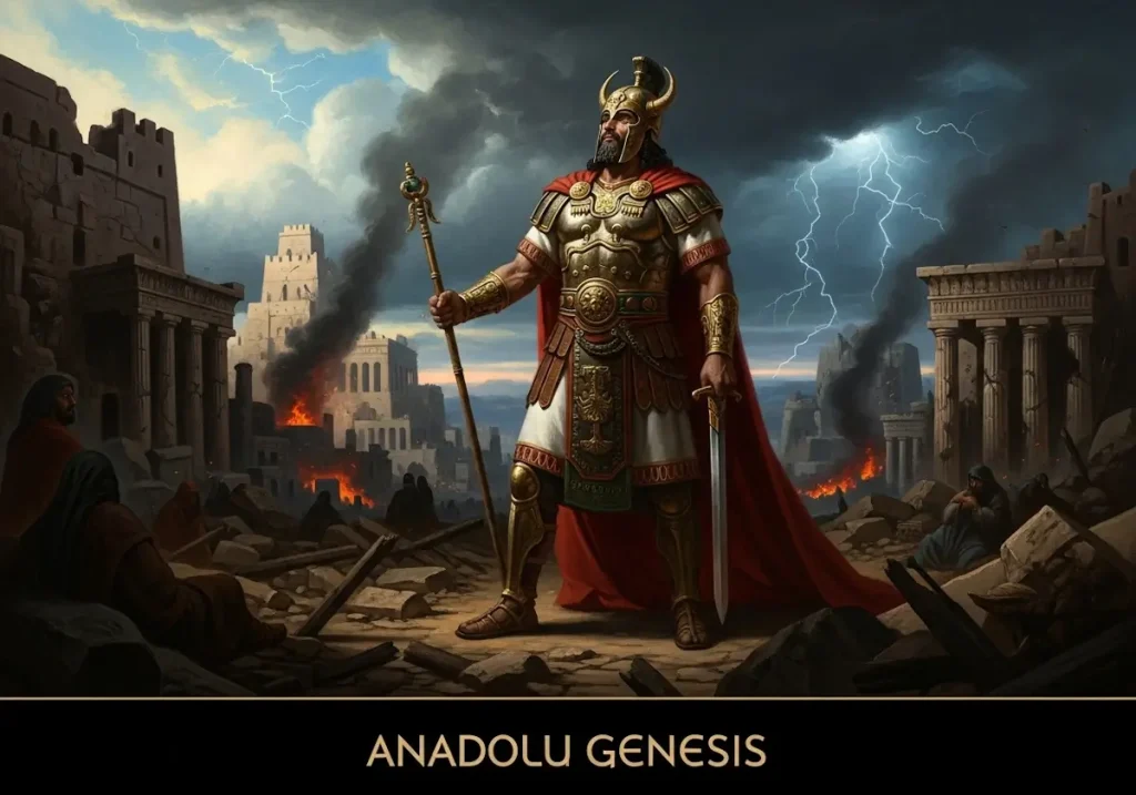 Akad İmparatorluğu’nun epik uyarlamaları, Sümer mirasını imparatorluk ideolojisiyle zenginleştirerek siyasi meşruiyetin aracı haline getirmiştir. Naram-Sin Destanı, bu sürecin en çarpıcı örneklerinden biridir; MÖ 2254-2218 yılları arasında hüküm süren kral Naram-Sin’i odak alan fragmanlar, Eski Akad ve sonraki Asur kopyalarında korunmuştur. Anadolu Genesis olarak hazırlanan bu bölüm, dizinin Akad Dönemi destanları bağlamında yer alır; önceki Atrahasis Destanı’ndaki kozmik denge ve nüfus kontrolü temalarından kalan tanrı-insan ilişkisini hubris ve ceza ikiliğiyle derinleştirerek, sonraki Lugalbanda kahramanlık döngüsüne ve Babil dönemindeki kraliyet mitlerine zemin hazırlar. Destan, Mezopotamya’nın Bereketli Hilal coğrafyasında gelişen imparatorluk bürokrasisini, arkeolojik stel ve tablet bulguları üzerinden aydınlatarak epik geleneğin evrimini vurgular.